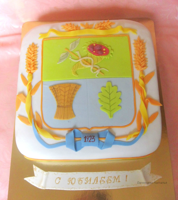 Такой тортик в виде герба нашего Чугуевского района Харьковской области заказали в подарок работнику райадминистрации