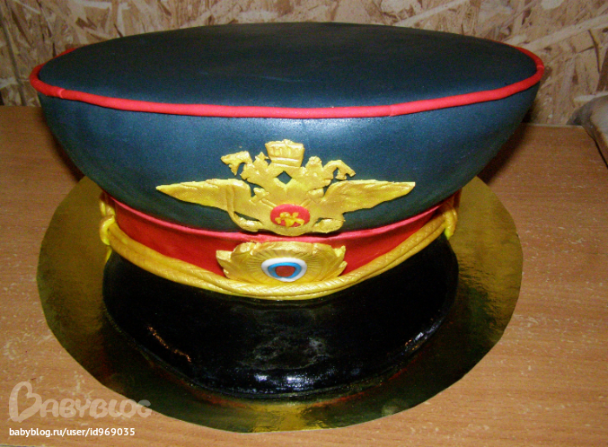 Торт Фуражка, внутри классический бисквит, крем йогуртовый с клубникой и часть с мандаринами. Вес 3кг. Делала первый раз, поэтому косяков куча. Кидайте в меня тапки и помидоры!