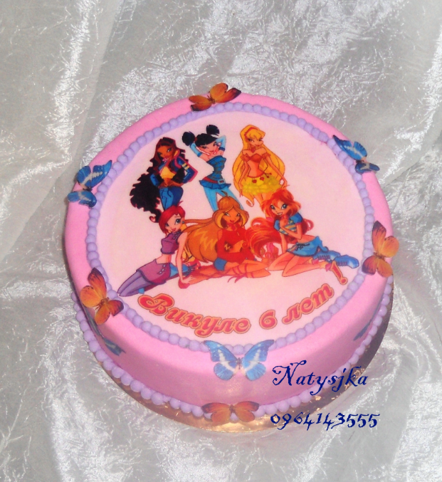 После неудачного дебюта в лепке винкс решила не эксперементировать и когда хотят Винкс, предлагать картинки, первый мой торт со сьедобной картинкой.
