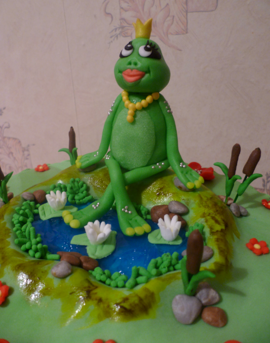 Заказали девушки своей начальнице такой шуточный тортик на 55-летний юбилей.Она любит лягушек))(делала по фото из инета)