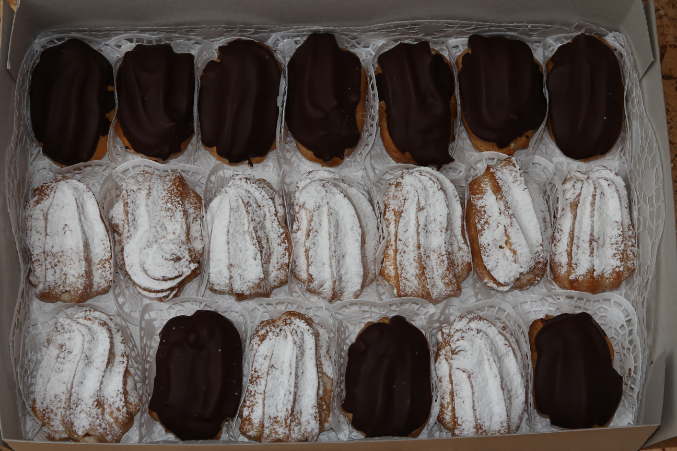 А через пару дней к ней отправились вот такие эклеры с заварным кремом с сахарной пудрой и взбитыми сливкими с шоколадной глазурью