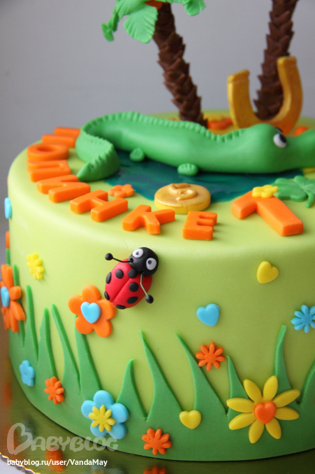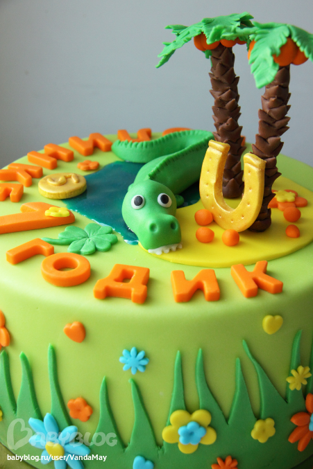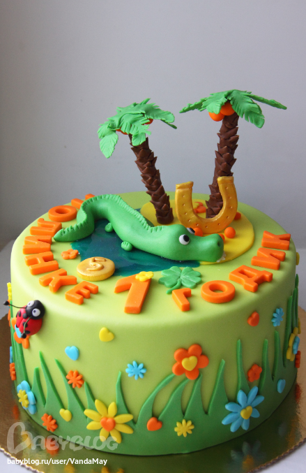 Торты детскиеОстров Везения с соответствующей атрибутикой))) крокодил поймался, вырос кокос, подкова на счастье, четырехлистный клевер, монетка пятачком и божья коровка)