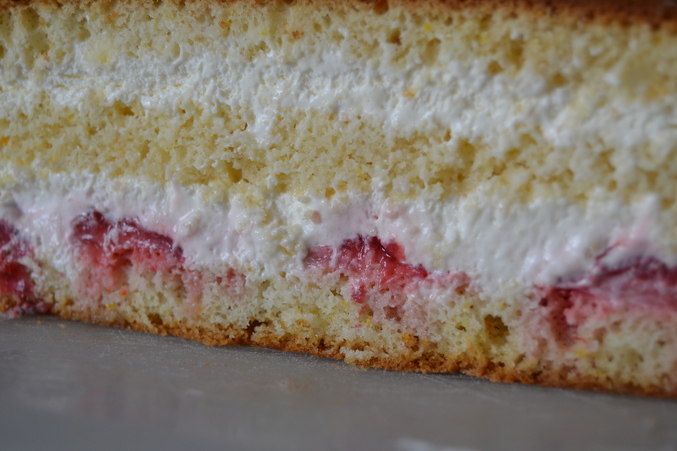 Проба перабисквит на белом шоколаде, сливочно-сметанный крем, клубника
