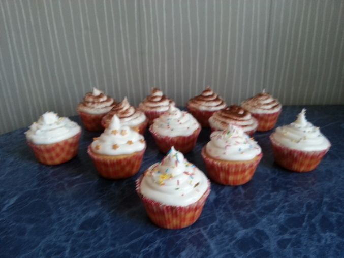 Молоко,яйцо,сахар,сметану,ванильн сахар и теплое растопл масло,затем все сухие ингрид.хорошо смешать и соединить с жидкой консист. И все вуаля, оч мне они нравятся, потом напишите, как они вам)))