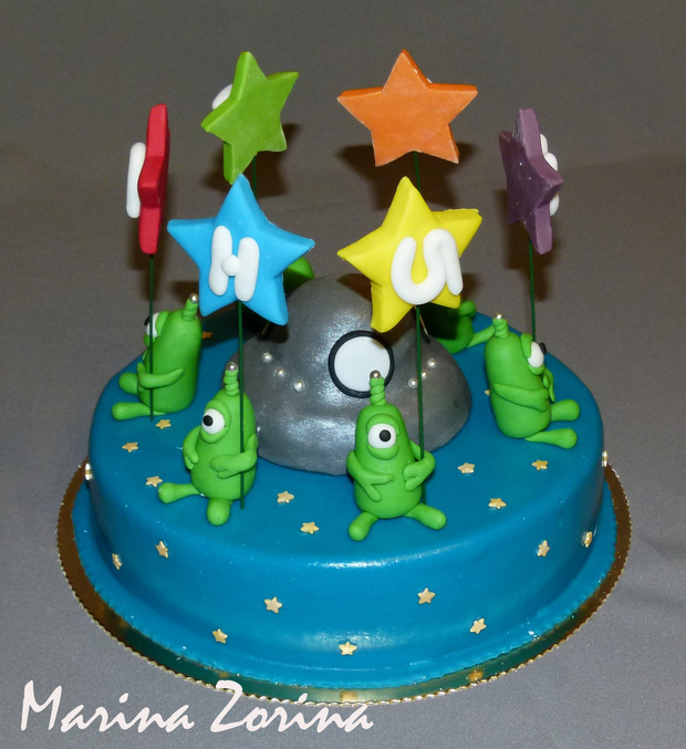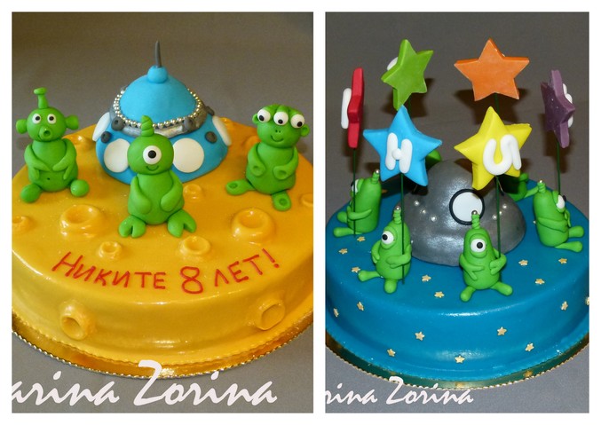 Торты детскиеДавно хотела сделать зеленых человечков, получилось аж два раза:)) спасибо за идею с одноглазиками девушке с ББ которая делала большой торт на 8 марта