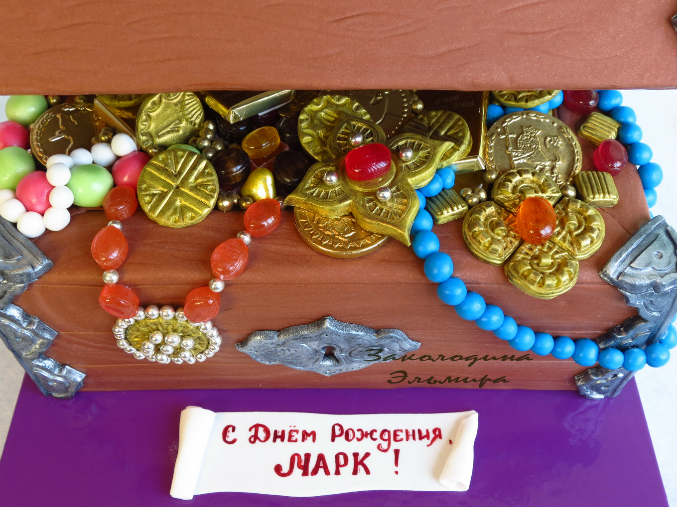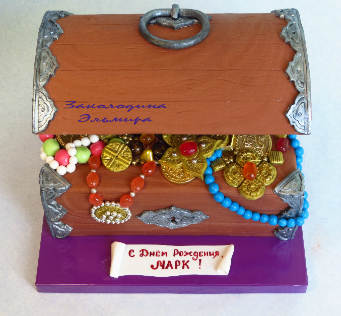 Эльмира, подскажите, пожалуйста, какой размер сундучка получился без крышки (ширина, длина, высота). и сколько порций молочной девочки Вы брали для этого размера? Мне на днях предстоит подобная работа, как оказалось не так много красивых тортов-сундуков! Ваши работы одни из самых достойных!!! Браво!