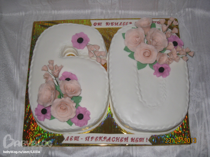 Торты юбилейныеМоя работа. В 6-ке шок. бисквит, творожно-слив. крем, клубника, киви, ананас. В 0 - медовик. Забадалась с этой шестеркой, если честно. Даже заплатку пришлось положить, не смогла нормально под хвостиком мастику уложить.(( Вес чуть больше 5 кг.
