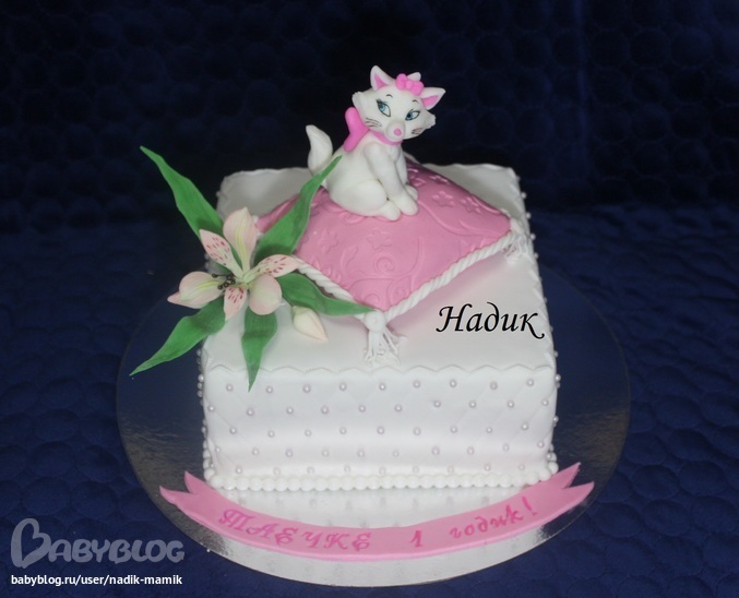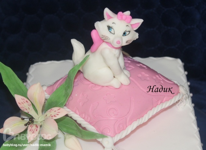 дизайн был полностью на моё усмотрение, сначало просто подушку хотела с пинетками, потом кошечку слепила, потом из-за ограничения в весе передумала на счет подушки, лишнее от торта отрезала из одного кусочка всё-таки сделала маленькую подушечку, так что внутри подушечки тоже тортик! А вот кстати как внутри смотрится