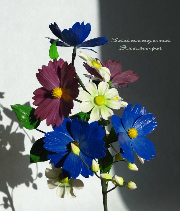 из отдельных. сушились в течении ночи, ночью делала, к утру были полностью готовы и собраны. Покрашены обычными гелевыми красками (вмешаны в мастику), край оттеняла пыльцой для лепестков.