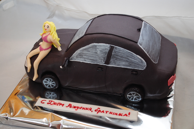 Торты 3ДРебята заказали на ДР своему другу машину, и в придачу девушку. Машина bmw m5