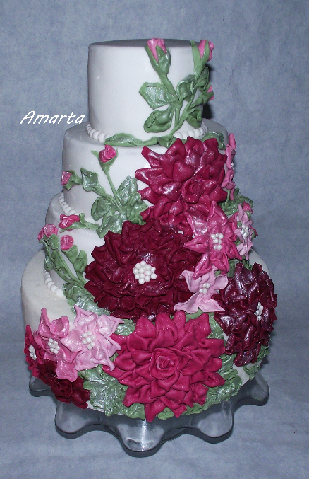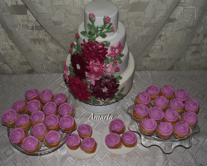 постоянно еще его охлаждая.туда сюда..нарезала лепестков..тащу торт..и так все время..спина аж заболела..Но как идея великолепна.можно брать узор попроще ..