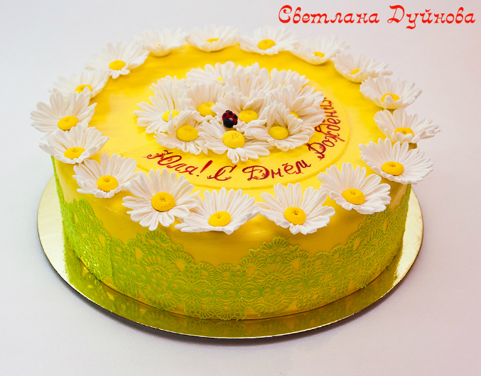 Торты для женщинДолго страдала ромашки и кружево - совместимы ли? Получилось, на мой взгляд, жизнерадостно и нежно. Только вот вставочка кружева и его состыковка не удалась.