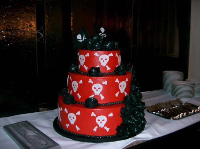 сейчас попробую найти с черепами не фигурками.. аппликаци все же проще и быстрей будет. сделать 3 -х этажный тортище. сверху моцик и по кругу черепа, думаю мужчина оценить )))