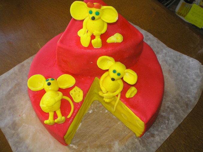 раз никто не комментит, давайте я скажу. 1. Выравнивание не до конца доделано, видны явные бугры, хотя также видно, что старались. 2. Почему мышки желтые? если это такой спец ход, то оттенок желтого должен быть другим, чтобы не пересекаться с оттенком сыра, если же пока красители не прикупили, то лучше немножко отложить выставление тортиков для критики. 3. В целом мышки сами и покрытие сыра удались. 4. Фон фото не эстетичен, создается ощущение не аккуратности, хотя наверняка все совсем наоборот. фото - показатель вашей работы, лучше выбирать более нейтральный фон. ИМХО.