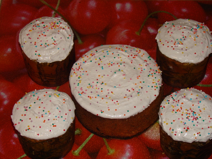 Куличи творожные, пекла по этому рецепту , только дрожжей все пачку бухнула, теста намного больше стало и поднялось шикарно, убежало все в духовке, пришлось обрезать. Обрезков еще на кулич хватило бы))