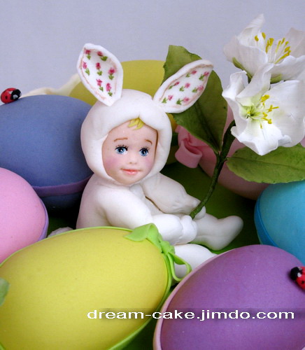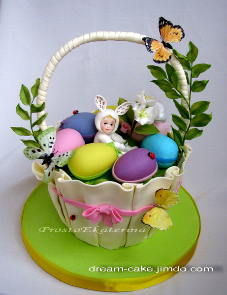 Внутри "Молочная девочка", вес 3,4 кг. В некоторых яйцах киндеры, некоторые полые с сюрпризами в виде конфет и мастичных фигурок.