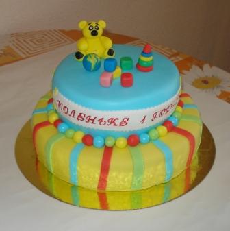 Торты детскиеТортик племяннику мужа. Внизу "Белый трюфель", верх - "Клубничный поцелуй". Муж с сыном вовсю помогали катать шарики. Была еще свечка-единичка.