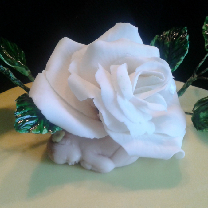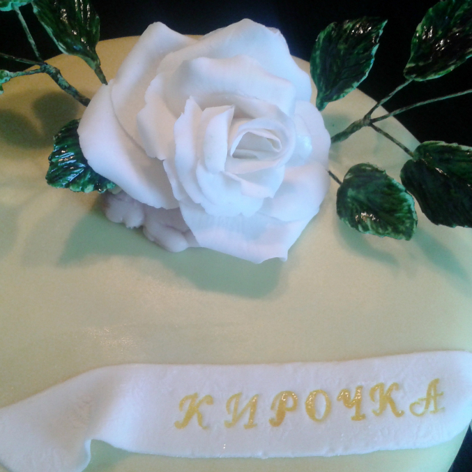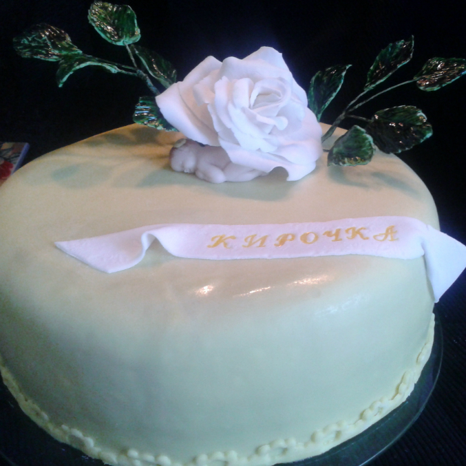 Шифоновый бисквит (обертка), Сливочное суфле с вишней, под мастику крем маслянно-сгущеновый и крем из 2 шоколадов, мастика молочная, цветок- офигительная.