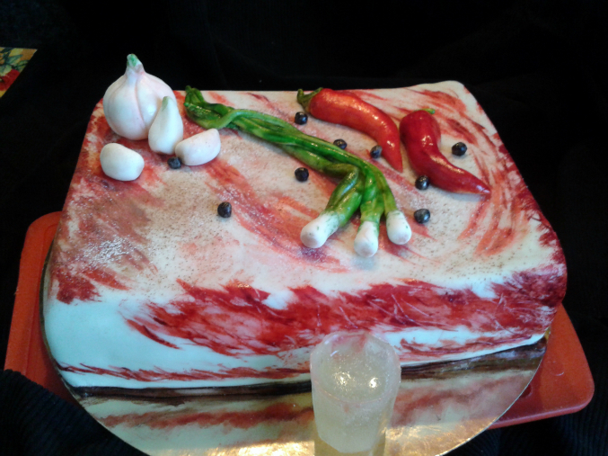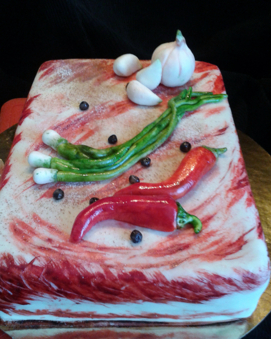 Классный тортик. Все прям настоящее. А мастику для сала смешивали белую и красную или обтянули белой,а потом красили разводами? Тоже заказали сало с перцем. Не знаю как к нему подступиться. Очень поможете если ответите.