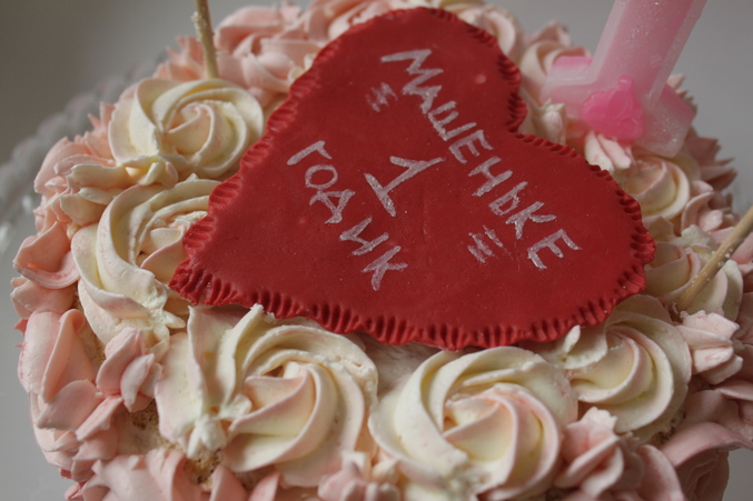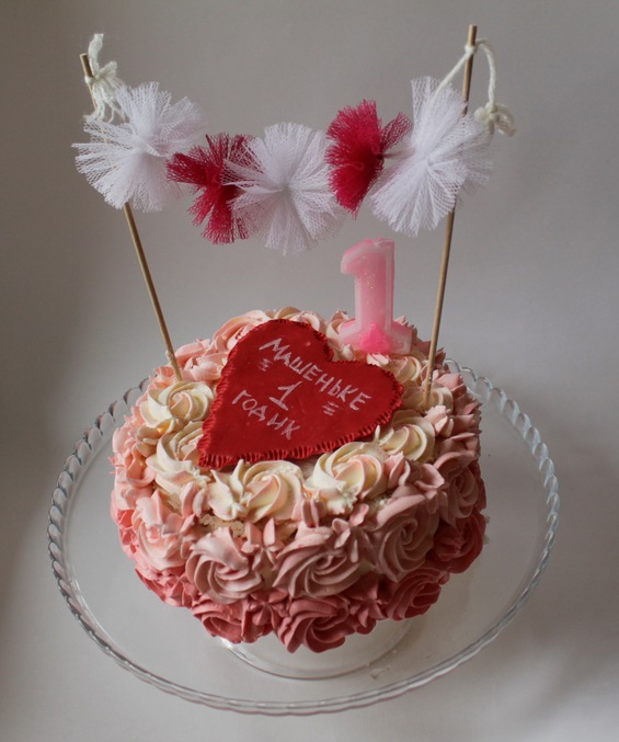 Торты детскиеДевочки, спасибо всем за советы, сделала доче тортик на годовасие, есть, конечно, огрехи, но в целом я очень довольна. Только крем мне не понравился для розочек - все-таки слишком жирный на вкус (это тот из 5 белков, 200 г сахара и 226 г сливочного масла). А сам торт бисквытный с сиропной пропиткой, кремом сливочным с маскарпоне и клубничным пюре - очень вкусный.