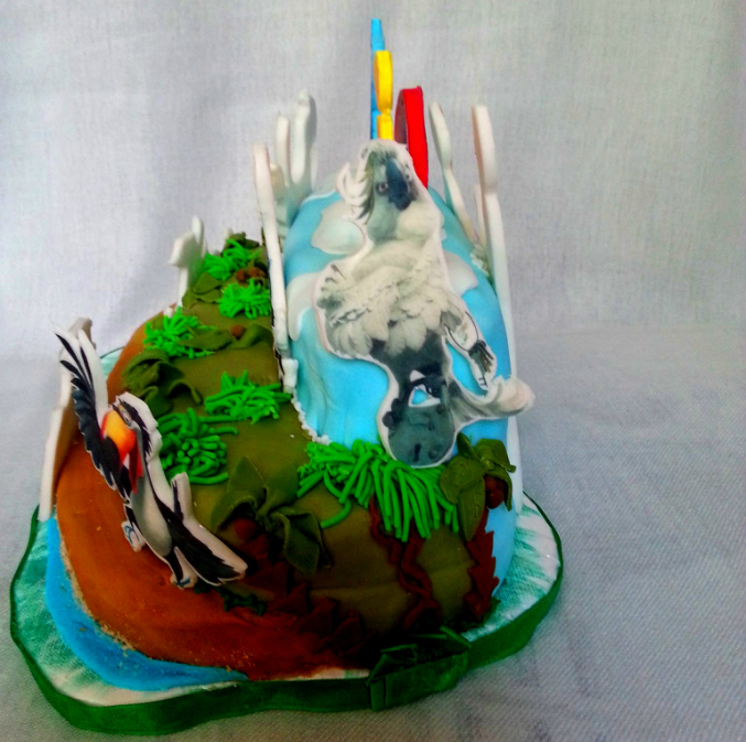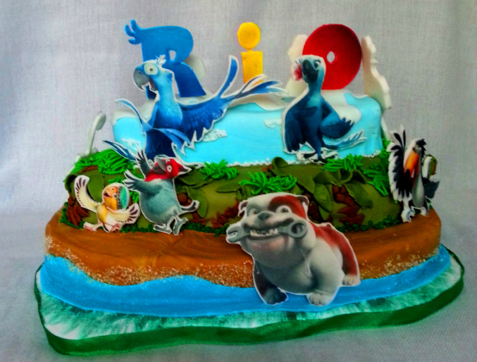 Торты детскиеПопросили меня сделать тортик на тему "РИО" два дня пыталась вылепить этих синих куриц безуспешно, то мастика не крошилась, то клюв разваливался в слезах и расстройствах была готова звонить с печальным отказом заказчице и поняла что разговора о лепке не было, вот так выкрутилась, не так конечно круто как лепка за то герои узнаваемы 100% и все кто влез :) Ребенку очень понравилось, ну и начинка тут была бомбовская: Раффаэлло и вафельными коржами и кокосовыми сливками.