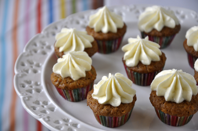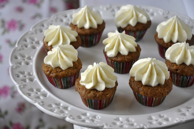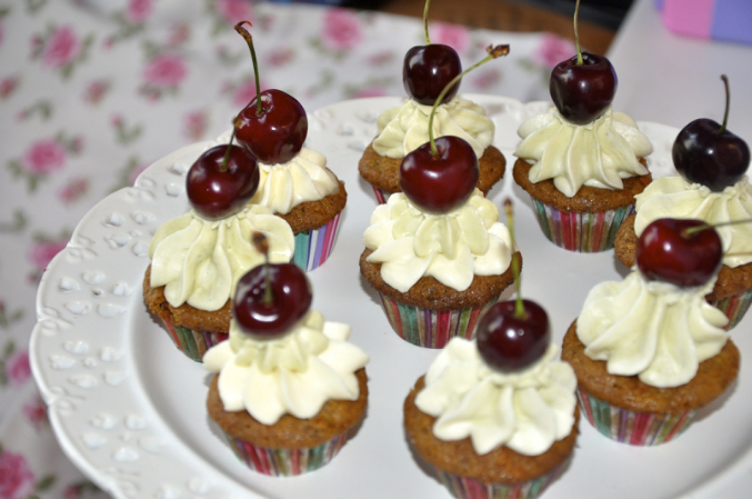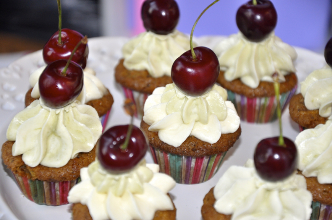 Пряно-морковные мини капкейки с сырным кремом и черешней