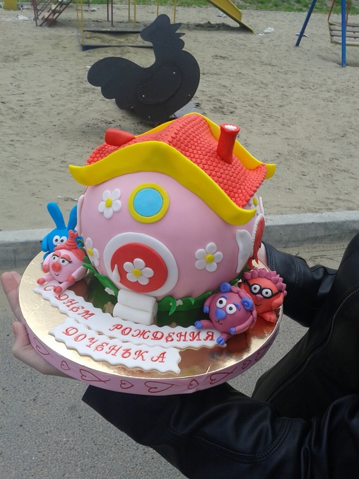 Торты детскиеВот такой получился домик. По словам клиентки маленькая именниница была в восторге, и это замечательно). вес -4,3 кг. внутри пироженное картошка и "Панчо". К сожалению в связи с тем что все делала в режими очень быстро, так как в эти же дни проходили курсы замечательной Натальи Ананьевой, фотала на телефон и фото не лучшего качества. Под кат фото от клиентки.