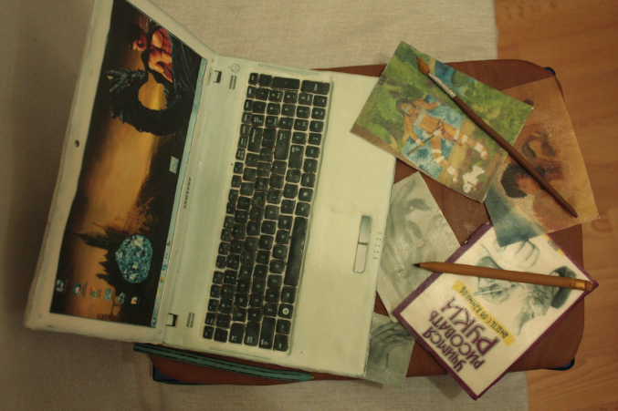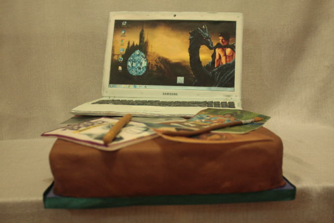 Торты для мужчинТортик заказала мама для своего 14летнего сына, описав его так: "Очень увлекается компами но в то же время считает себя глубоко творческой личностью и пишет роман в стиле Гарри Поттера" собственно на рабочем столе компьютера обложка его "почти книги", а раскиданные рисунки это его наброски и эскизы к эпизодам этой самой книги, а маленькая книжечка про "учимся рисовать" попалась на глаза случайно на фотках его стола, которые кидала его мама, нашла в нете эту книжку и добавила для большей узнаваемости :))