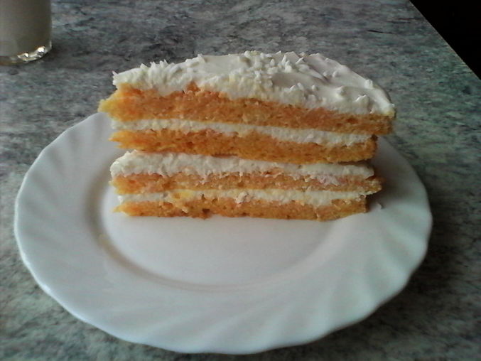 Для пропитки торта с морковью я брала крем из сметаны, но можно и заварной, со сгущенкой и др. По настроению я иногда в крем добавляю измельченные орешки.