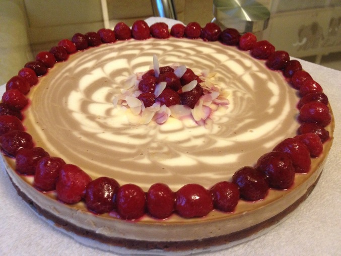 Вчера, 25.05.13, моей дорогой доченьке исполнилось 11 месяцев. В честь моей Ягодки-Малинки к праздничному завтраку был изготовлен вот такой вот Чизкейк "Моккочино".
