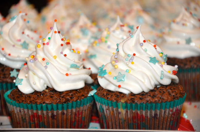 Капкейки и КейкпопсыЭти капкейки для мальчика на девятый день рожденя. Угощение для одноклассников. Шоколад, вареная сгущенка, яркая посыпка -все что так любят дети! Думаю на день рождения отличная альтернатива Барни, киндерам и различным конфетам.
