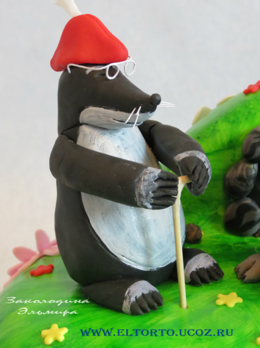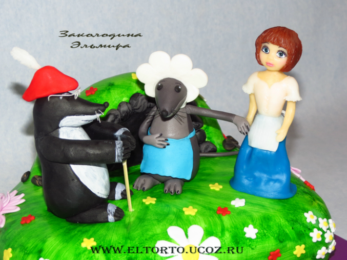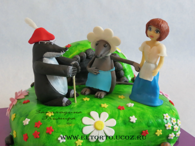 Девочку просили сделать похожей на именинницу, поэтому она не похожа на своего сказочного прототипа. Крысу и крота лепил муж.