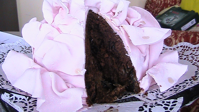 Торт "Роза". Внутри трюфельная масса с черносливом. Заливка шоколадная. Украшение из мастики на желатине. Красители натуральные.