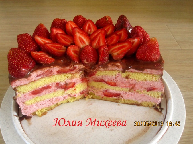 Украшение тортов кремом,шоколадом, фруктамиКлассический бисквит с клубничным суфле