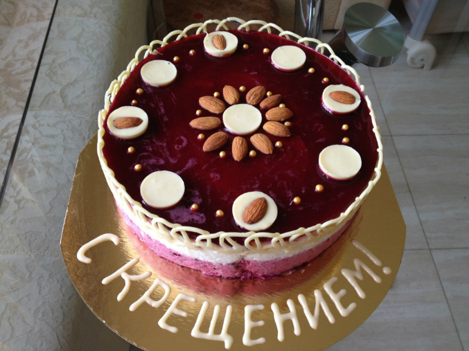 Украшение тортов кремом,шоколадом, фруктамиЕще один на Крестины. В пору дать ему специальное кодовое название "Крестильный")