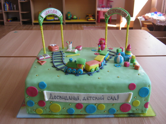 Да уж конфуз... Но таким образом родители моей группы денежки на тортик экономили.... я сама предложила печь.... конечно под мастику его спрятать только потом идея пришла.. Была утром идея заклеить и написать заново но времени не было.... поэтому так оставила. И подумала если кто нибудь что нибудь скажет не смолчу... Ведь экономия получилась колосальная... 8 кг..у нас я слышала по 750 ре... Но все были очень довольны!