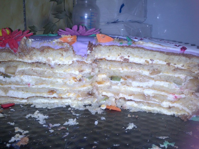 Внутри молочная девочка с бананами и киви! И разрезик.......