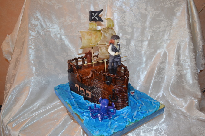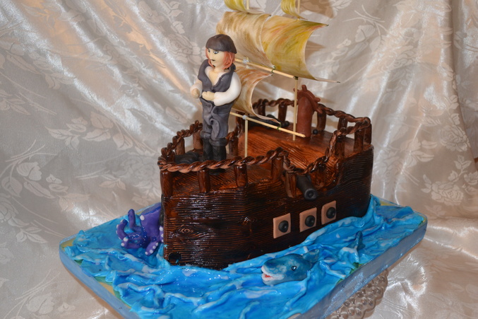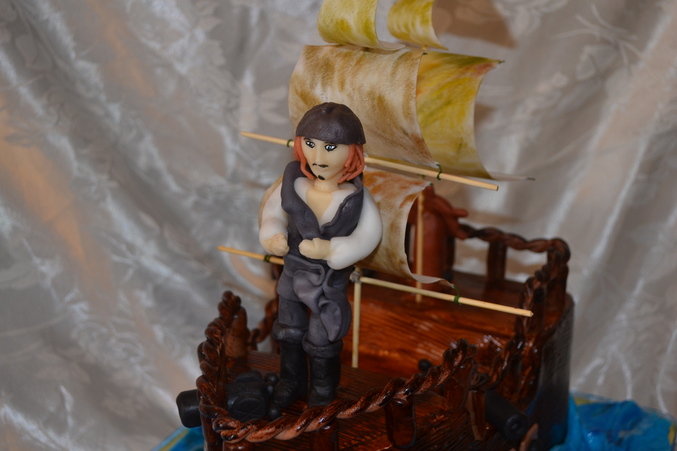 Торты 3Дочередной мой корабль. этот нравится больше остальных. спасибо Маше за мк, пирата лепила по ее примеру. это мой первый человечек, самостоятельный. очень много недочетов.. и с парусами как всегда беда. вес 4 кг, а заказ был на 2 кг