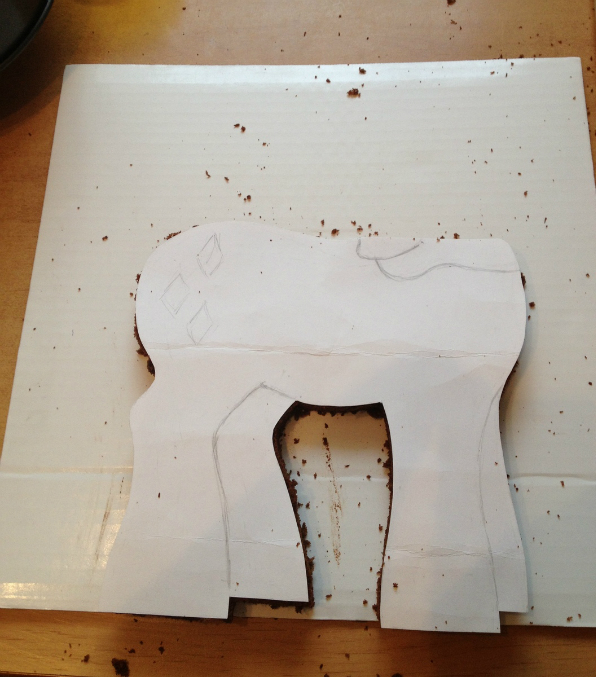 После чего приложила и вырезала по контуру отдельно тело и голову.