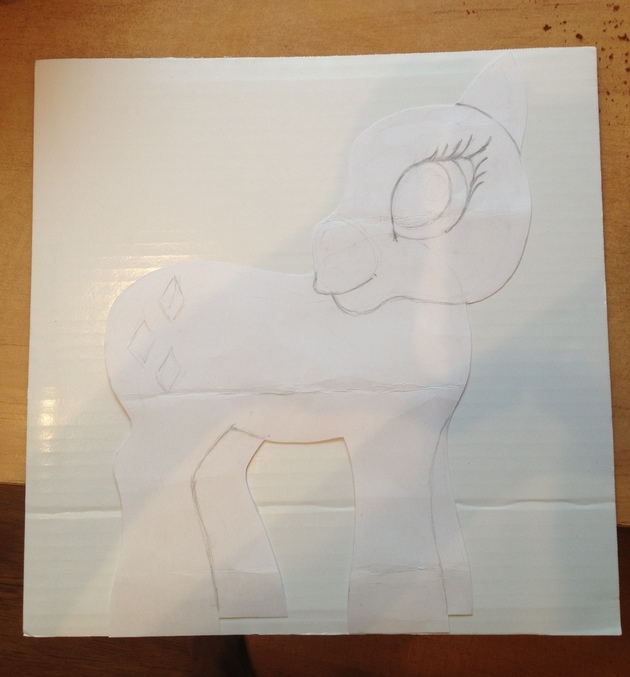 Итак. С начала я нарисовала предполагаемую пони на листе А3 такого размера, чтоб поместилась на моей подложке.