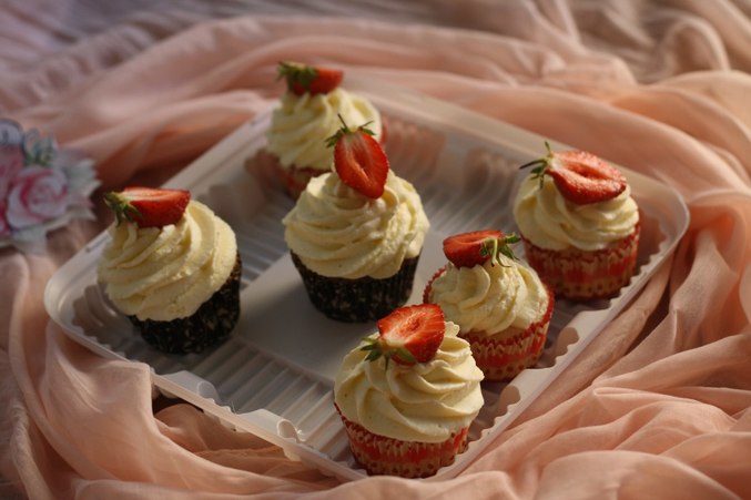 Шоколадные с масляным кремом и черешней, ванильные со сливочно-творожно-маскарпоне кремом)