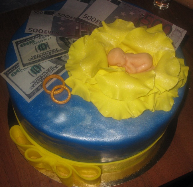Увидев этот тортик, знакомая попросила испечь что-нибудь такое же. Так как мастику заказываю под конкретный торт, запасов дома нет, слепила из того что было)))