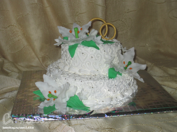 Очень красивый!!!! А как вы укрепляли двухъярусный торт, чтоб коржи не просели?