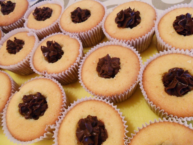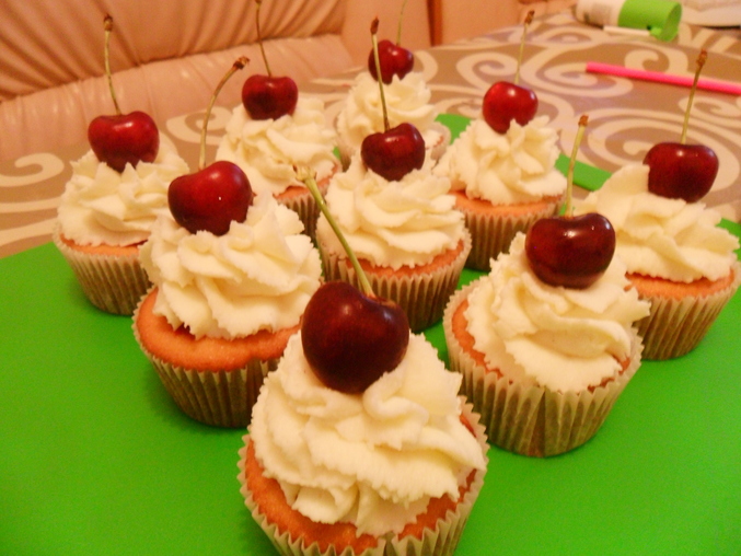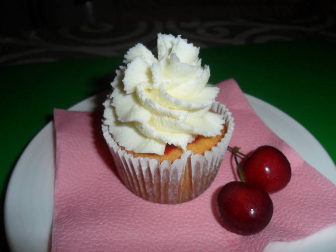 Разные капкейки ванильные с голубикой внутри + шоколадный крем