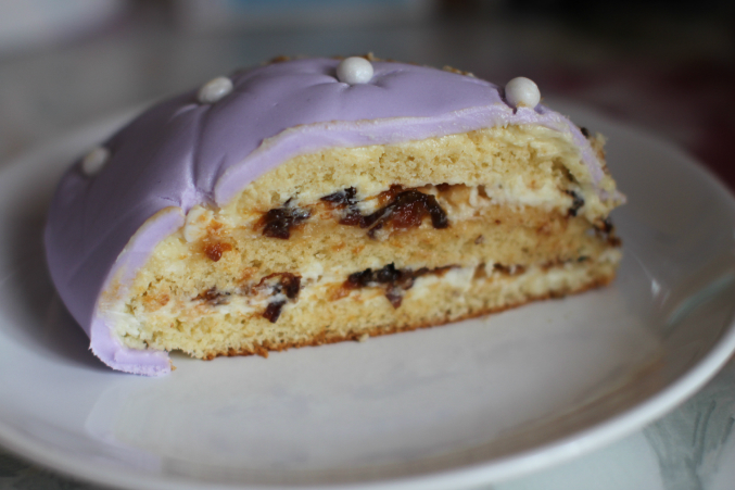 В этом тортике ванильный бисквит с кремом маскарпоне, черносливом и грецкими орешками.