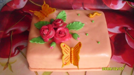 Торты для женщинВот такой незамысловатый тортик я испекла себе на ДР! Это мой второй торт из мастики. не могу научиться ровно обтягивать края...наверное, надо пластичнее мастику делать...