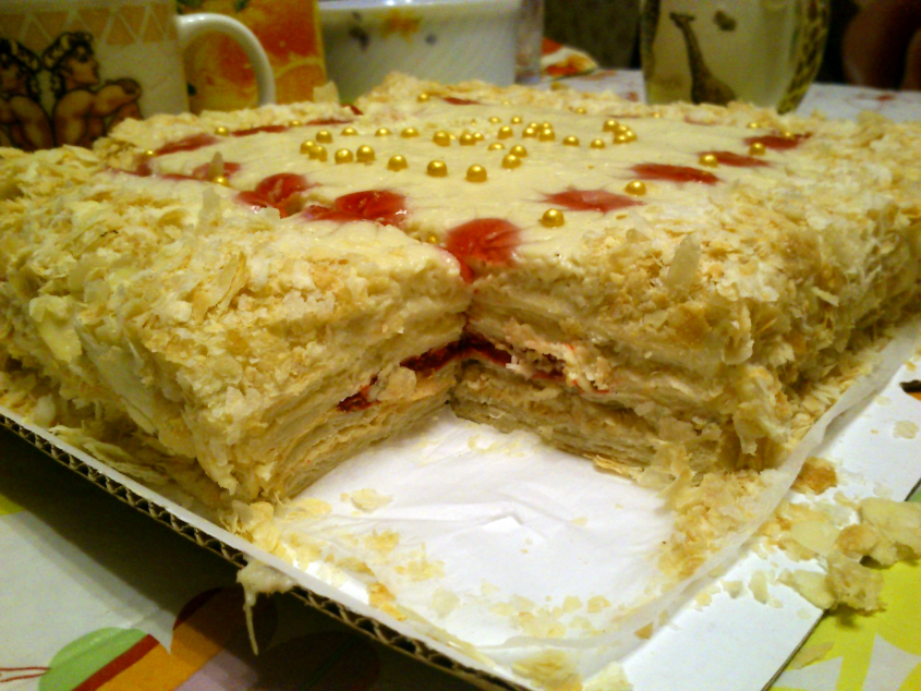 Торт как всегда был просто превосходен, от него оторваться невозможно, руки тянуться еще за кусочком, потом еще, потом еще.. и еще.. но больше некуда))))) Безумно вкусный Милфей. Всем советую.