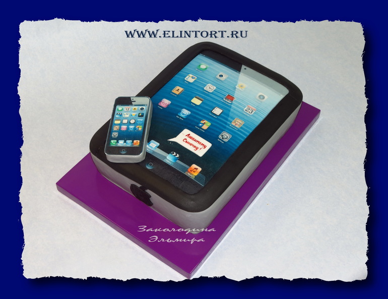 Конечно, Людмил, там все съедобно. Очень просто делается. Ну с айпадом понятно - он большой - это торт. А айфон - это бисквит такой же как в торте, измельченный в кашу вместе с кремом (если остаются кусочки, когда торт ровняю, то их измельчаю, они уже пропитанные, хорошо перемешиваются. Если этого мало, спецом мелю бисквит, смешиваю с кремом, чтоб получилось пироженное типа картошки (только вкус другой). Вылепливаю из этой массы прямоугольник, в морозилке его охлаждаю, ровняю, и потом обтягиваю мастикой, так же как торт :)
