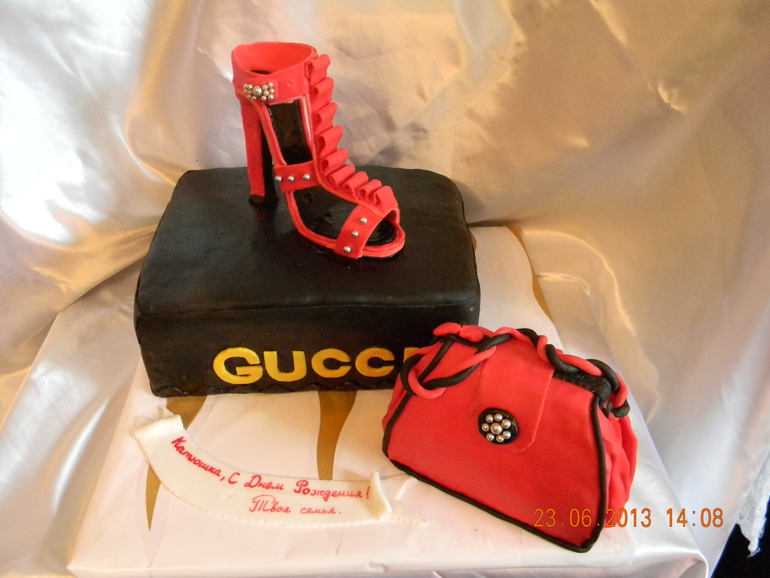 да в сумке тоже торт, мы с заказчицей договорились, если не высохнет, то вместо босоножки будет сумка , , торт должен был весить 5 кг, но поскольку добавила и сумку, то перевес 1.5 кг, получается сумка в подарок...