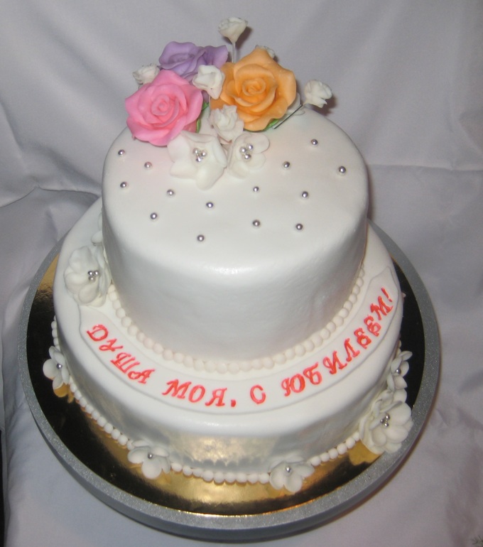 Торты юбилейныеНижний ярус - медовик, орешки... крем сметана с сгущенкой; Верхний - ванильный бисквит, персики... крем с маскарпоне. Вес 5 кг.